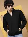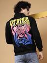 Rigo Men Black Oversized Printed Fleece Sweatshirt