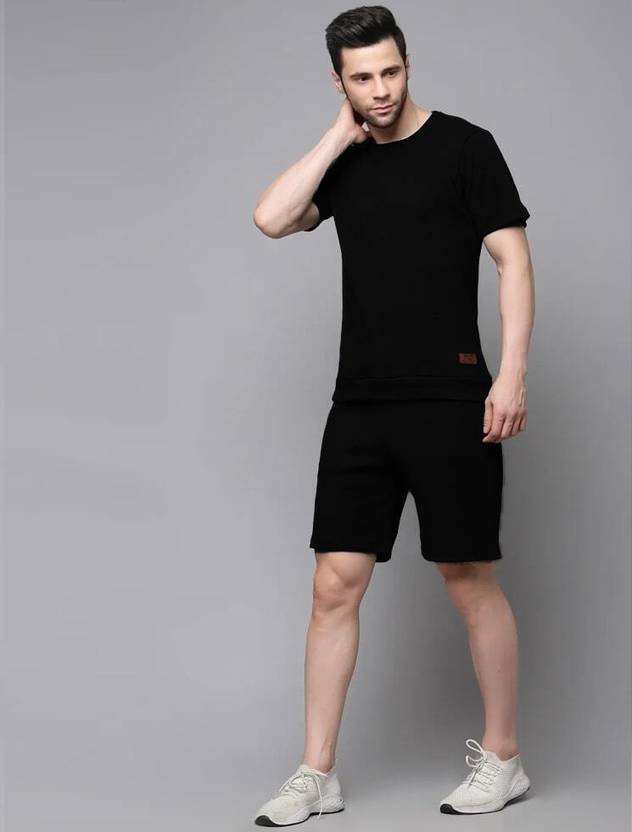RIGO presents men's Co-Ords made from rich textured Cotton Waffle Knit fabric. The Black Waffle Co-ords is a summer wardrobe essential, perfect for your outgoing look. It features solid pattern, t-shirt with round neck, half sleeves, with a pair of shorts with drawstring, side pockets, and a slim fit. Team it up with your favorite pair of sneakers for a stylish look and stay looking suave and comfortable this summer in these co-ords. Constructed from soft textured material, it's perfect for outdoor trips and harsh weather. As a bonus, it's design ensures comfort all day long.