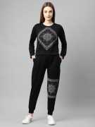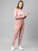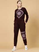 RIGO presents women's printed Co-ords made from rich textured cotton terry fabric. The Wine Botanical Printed Co-ords are fall/winter wardrobe essential, perfect for your outgoing look. It features sweatshirt with chest print, round neck, full sleeves, ribbed hem, and a pair of joggers with side pockets, elastic waistband with drawstrings & a regular fit. Team it up with a pair of sneakers for a stylish look and stay looking sharp and comfortable this winter in this printed co-ords. Constructed from rich textured material, it's perfect for outdoor trips and chilled weather. As a bonus, its regular-fitting design ensures warmth & comfort all day long.