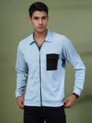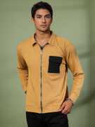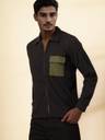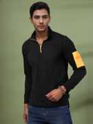 RIGO presents men's T-shirts made from rich self textured rib fabric. The blackT-shirt is a versatile fall/winter wardrobe essential, perfect for your outgoing look. Crafted with a classic design, this t-shirt offers timeless style and wearability. This t-shirt features contrast pocket, cuban collar, full sleeves, straight hem, zipper closure, and an oversized fit. Wear it with your favorite jeans for a stylish look that makes you the perfect companion for the season. Elevate your wardrobe with this timeless piece.