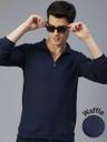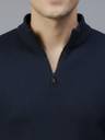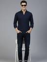 Men Solid Polo Neck Pure Cotton Navy Blue T-Shirt