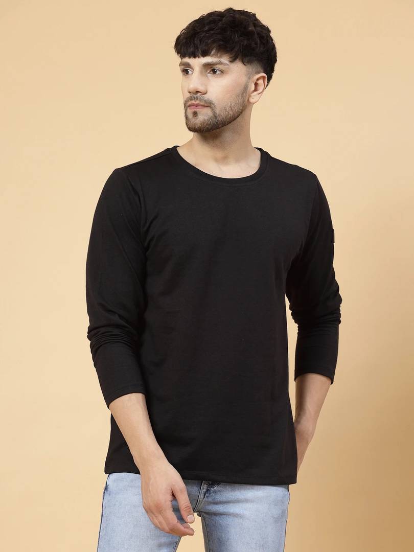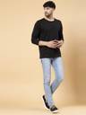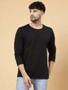 RIGO presents men's Oversized T-shirts made from rich textured Cotton Terry fabric. The Black Solid Oversized T-shirt is a versatile fall/winter wardrobe essential, perfect for your outgoing look. Crafted with a classic design, this t-shirt offers timeless style and wearability. This t-shirt features solid pattern, ribbed round neck, full sleeves, straight hem, silicone patch detailing, and an oversized fit. Wear it with your favorite jeans for a stylish look that makes you the perfect companion for the season. Elevate your wardrobe with this timeless piece.