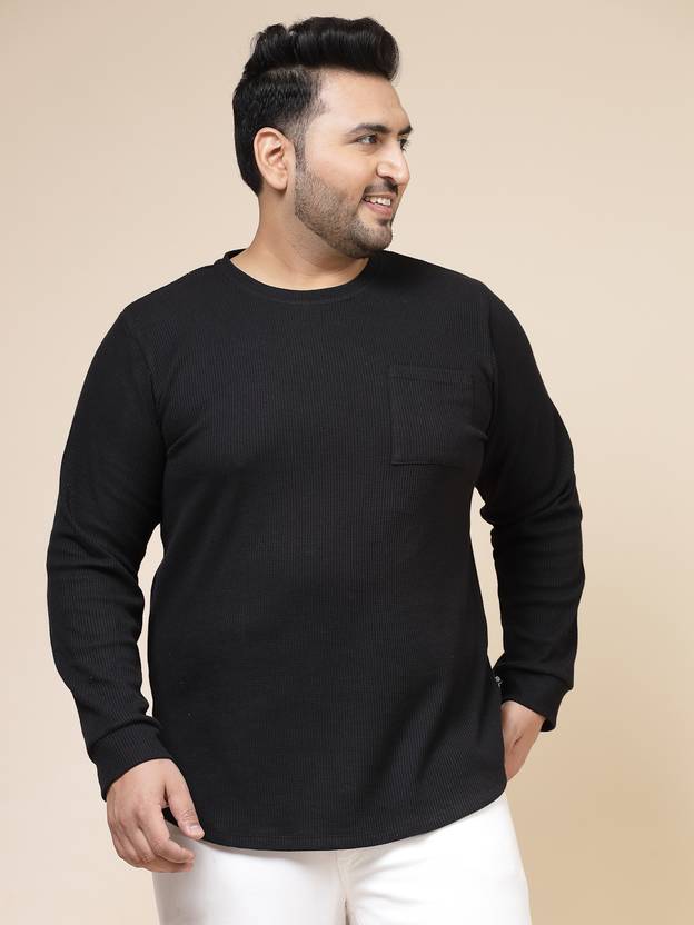 RIGO presents men's PLUS SIZE T-Shirts made from rich textured Waffle fabric. The Black T-Shirt is a wardrobe essential, perfect for your outgoing look. It features solid pattern, round neck, full sleeves, chest pocket, curved hem, and a slim fit. Team it up with your favorite jeans and a pair of loafers for a stylish look and stay looking suave and comfortable this summer in this t-shirt. Constructed from soft textured material, it's perfect for outdoor trips and harsh weather. As a bonus, it's design ensures comfort all day long.