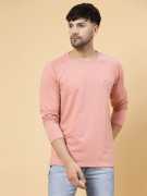 RIGO presents men's Oversized T-shirts made from rich textured Cotton Terry fabric. The Jade Solid Oversized T-shirt is a versatile fall/winter wardrobe essential, perfect for your outgoing look. Crafted with a classic design, this t-shirt offers timeless style and wearability. This t-shirt features solid pattern, ribbed round neck, full sleeves, straight hem, silicone patch detailing, and an oversized fit. Wear it with your favorite jeans for a stylish look that makes you the perfect companion for the season. Elevate your wardrobe with this timeless piece.