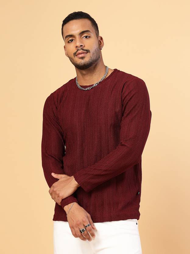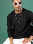 RIGO presents men's Solid Polo T-shirt made from rich textured polyster fabric. The Black Solid Cable Knit T-Shirt is a versatile all season wardrobe essential, perfect for your outgoing look. Crafted with a classic design, this T-shirt offers timeless style and wearability. This T-shirt features self textured, round neck, full sleeves, straight hem, and slim fit. Wear it with your favorite jeans for a stylish look that makes you the perfect companion for the season. Elevate your wardrobe with this timeless piece.