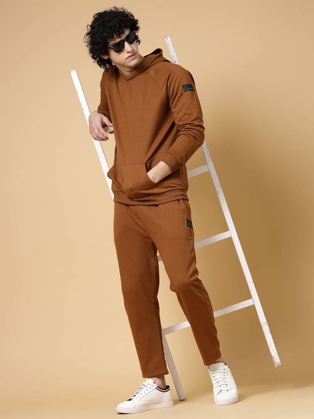 RIGO presents men's Solid Oversized Co-ords made from rich textured cotton fleece fabric. The Brown Solid Co-ords is a winter wardrobe essential, perfect for your outgoing look. It features solid pattern, hoodie without drawstrings, full raglan sleeves, ribbed hem, kangaroo patch pocket, trousers with side pockets & elastic waistband, and an oversized fit. Team it up with your favorite pair of boots for a stylish look and stay looking sharp and comfortable this winter in this solid co-ords. Constructed from rich textured material, it's perfect for outdoor trips and chilled weather. As a bonus, its oversized fitting design ensures warmth & comfort all day long.