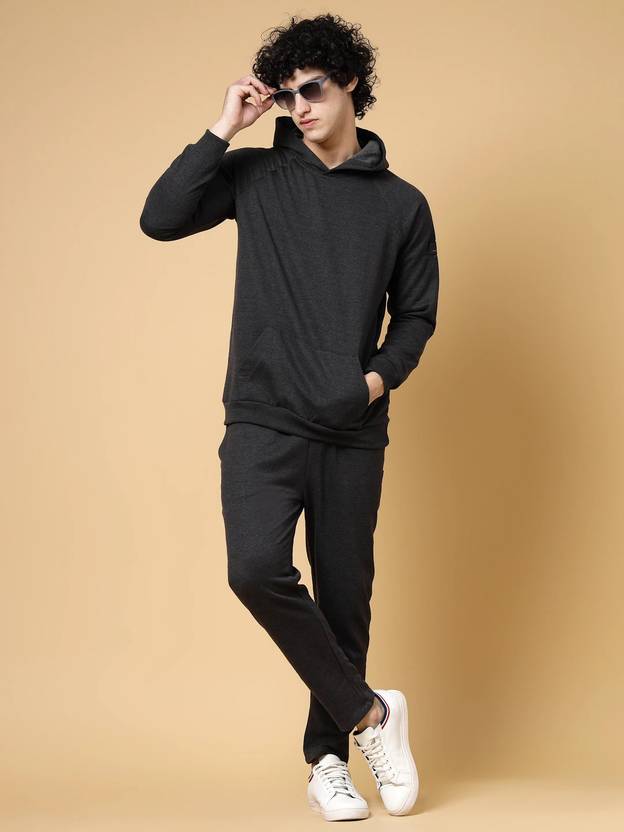 RIGO presents men's Solid Oversized Co-ords made from rich textured cotton fleece fabric. The Charcoal Solid Co-ords is a winter wardrobe essential, perfect for your outgoing look. It features solid pattern, hoodie without drawstrings, full raglan sleeves, ribbed hem, kangaroo patch pocket, trousers with side pockets & elastic waistband, and an oversized fit. Team it up with your favorite pair of boots for a stylish look and stay looking sharp and comfortable this winter in this solid co-ords. Constructed from rich textured material, it's perfect for outdoor trips and chilled weather. As a bonus, its oversized fitting design ensures warmth & comfort all day long.