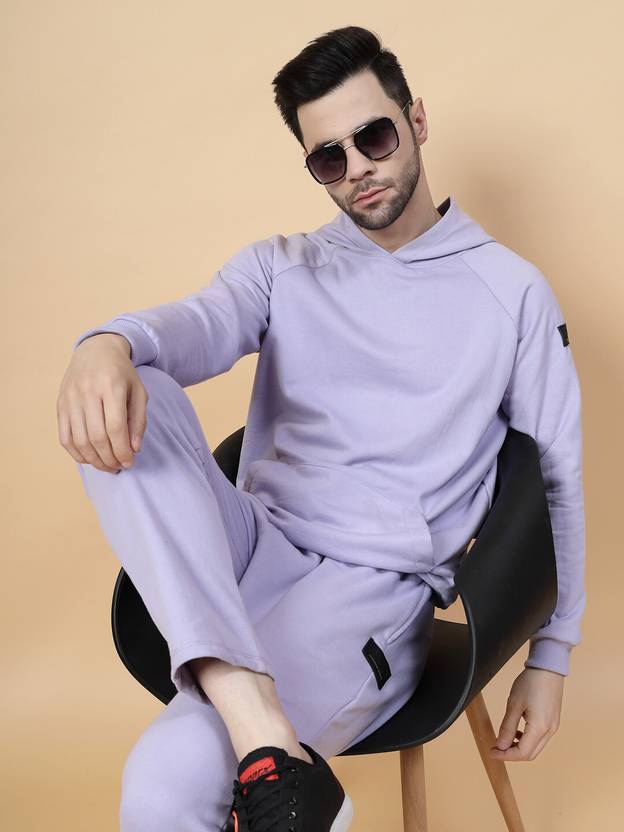 RIGO presents men's Solid Oversized Co-ords made from rich textured cotton fleece fabric. The Light Purple Solid Co-ords is a winter wardrobe essential, perfect for your outgoing look. It features solid pattern, hoodie without drawstrings, full raglan sleeves, ribbed hem, kangaroo patch pocket, trousers with side pockets & elastic waistband, and an oversized fit. Team it up with your favorite pair of boots for a stylish look and stay looking sharp and comfortable this winter in this solid co-ords. Constructed from rich textured material, it's perfect for outdoor trips and chilled weather. As a bonus, its oversized fitting design ensures warmth & comfort all day long.