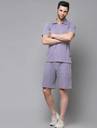 RIGO presents men's Co-Ords made from rich textured Cotton Waffle Knit fabric. The Light Purple Waffle Co-ords is a summer wardrobe essential, perfect for your outgoing look. It features solid pattern, t-shirt with cuban collar, half sleeves, with a pair of shorts with drawstring, side pockets, and a slim fit. Team it up with your favorite pair of sneakers for a stylish look and stay looking suave and comfortable this summer in these co-ords. Constructed from soft textured material, it's perfect for outdoor trips and harsh weather. As a bonus, it's design ensures comfort all day long.