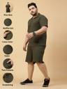 RIGO presents men's PLUS SIZE solid CO-ORDS made from rich textured waffle knit fabric. The Olive Waffle Co-ords is a spring/summer wardrobe essential, perfect for your outgoing look. It features solid pattern, has t-shirt with polo neck, half sleeves, curved hem, and shorts with drawstring closure, side pockets and regular fit. Team it up with a pair of sneakers for a stylish look and stay looking sharp and comfortable this spring/summer in these co-ords. Constructed from rich textured material, it's perfect for outdoor trips and hot weather. As a bonus, its regular-fitting design ensures comfort all day long.