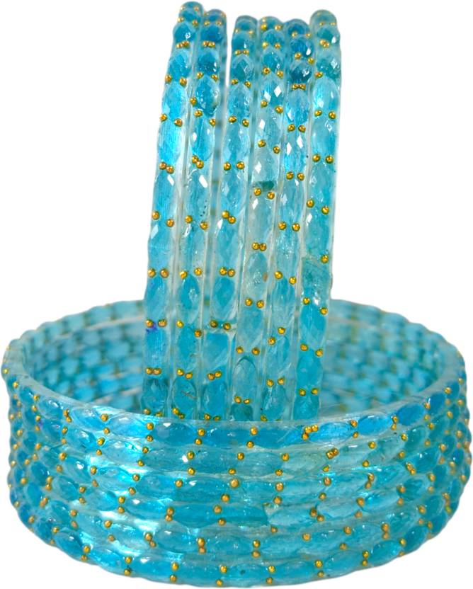 RIJB Raindrop Crystal Glass Bangle Set Studded With Diamond Cut Beads & Golden Mini Peals for Women & Girls | Traditional Transparent Fancy Glass Bangles/Chudi Set for Wedding, Party- Set of 12