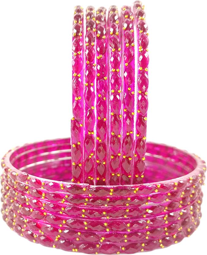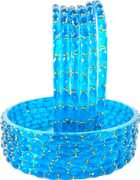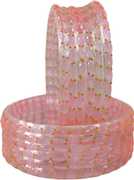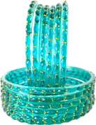 RIJB Raindrop Crystal Glass Bangle Set Studded With Diamond Cut Beads & Golden Mini Peals for Women & Girls | Traditional Transparent Fancy Glass Bangles/Chudi Set for Wedding, Party- Set of 12