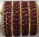 Stylish Traditional Glass Bangle Set with Golden Beads & Polka Dots Studded Velvet Bangles Set For Women and Girls-Set of 34