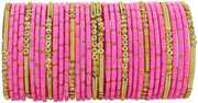 Stylish Traditional Glass Bangle Set with Golden Beads & Polka Dots Studded Velvet Bangles Set For Women and Girls-Set of 34