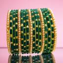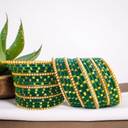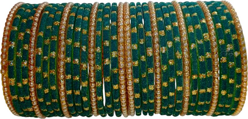 RIJB Traditional Glitter Glass Velvet Bangles Set for Women & Girls | Ethnic Indian Bridal Chura with Pearl Accents | Festive & Wedding Wear | Stylish Kach Ki Chudi Set | Girl's Fashionable Glass Bangles Set