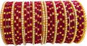 RIJB Traditional Glitter Glass Bangles Set for Women & Girls | Ethnic Indian Bridal Chura with Pearl Accents | Festive & Wedding Wear | Stylish Kach Ki Chudi Set | Girl's Fashionable Glass Bangles Set