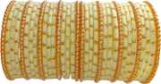 Add a splash of Festive color to your ethnic wear with this RIJB Traditional Glitter Glass Bangle Set for Women and Girls, featuring elegant pearl detailing for a graceful look. This bridal chura set is specially designed for haldi ceremonies, weddings, festivals, and special occasions.