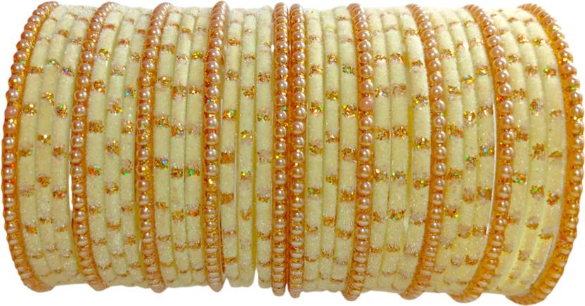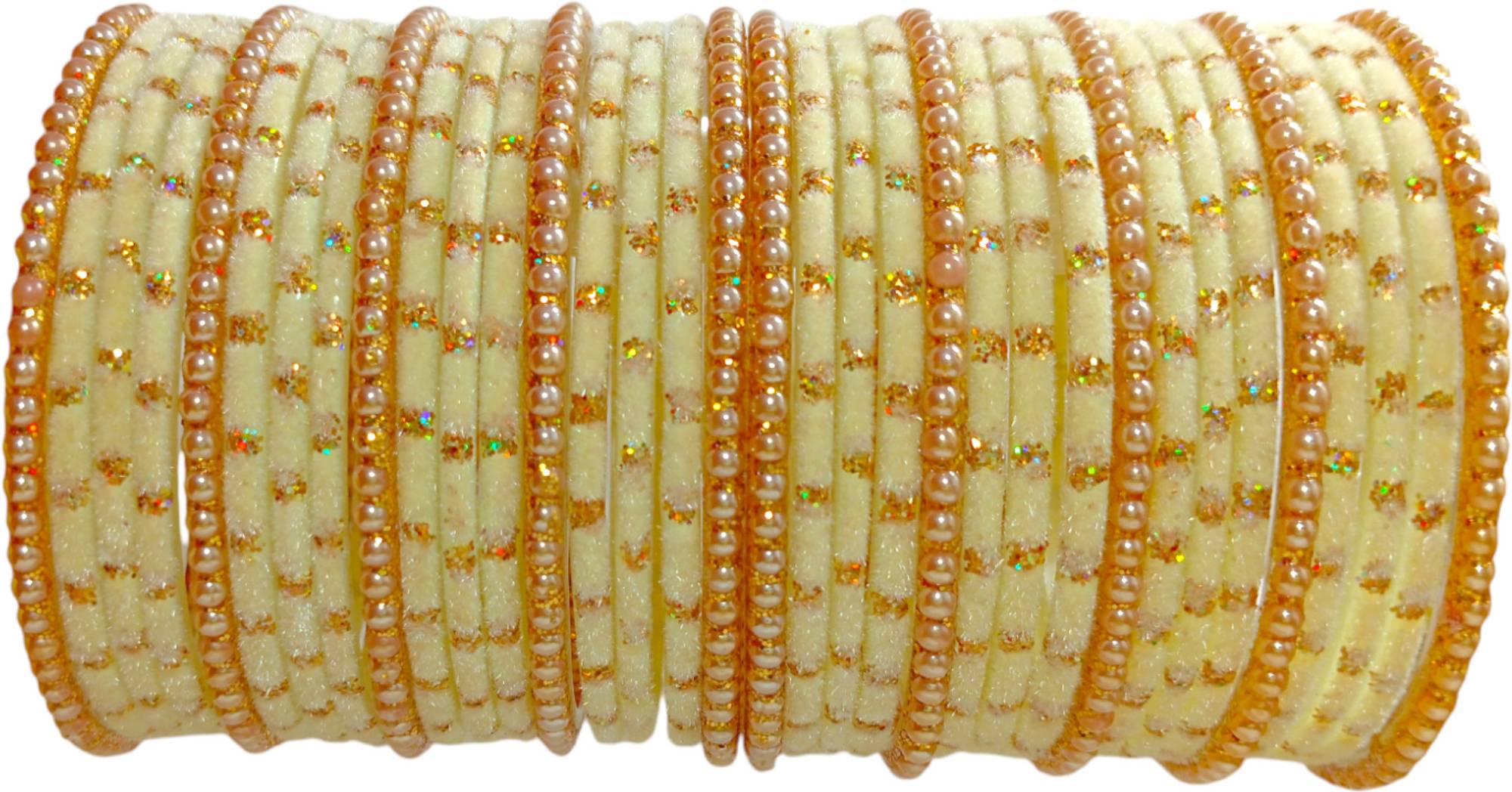 Handcrafted with high-quality glass, the bangles offer a brilliant shine, while the vibrant yellow glitter finish and pearl accents elevate your traditional attire. Whether you're attending a haldi function, Navratri, or any Indian festival, these ethnic bangles are sure to complete your outfit.