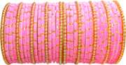Add a splash of Festive color to your ethnic wear with this RIJB Traditional Glitter Glass Bangle Set for Women and Girls, featuring elegant pearl detailing for a graceful look. This bridal chura set is specially designed for haldi ceremonies, weddings, festivals, and special occasions.