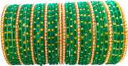 RIJB Traditional Glitter Glass Bangles Set for Women & Girls | Ethnic Indian Bridal Chura with Pearl Accents | Festive & Wedding Wear | Stylish Kach Ki Chudi Set | Girl's Fashionable Glass Bangles Set