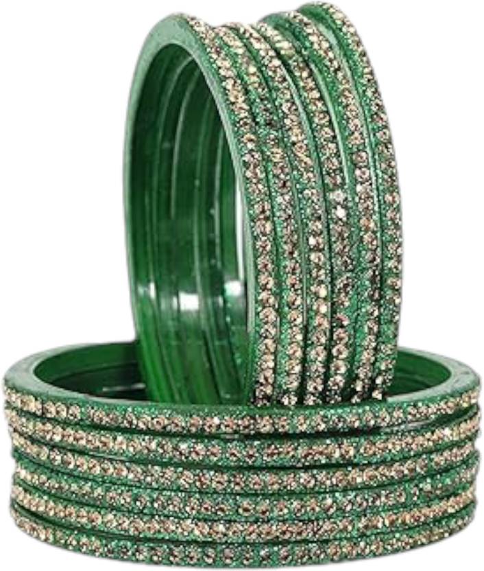 RIJB Latest Glass Bangles Set with White Zircon Diamond Work For Women & Girls | Glass Chudi Set | Stylish Bangles Set | Trendy Glass Bangles for Daily Uses | Best for Birthday Party & Wedding