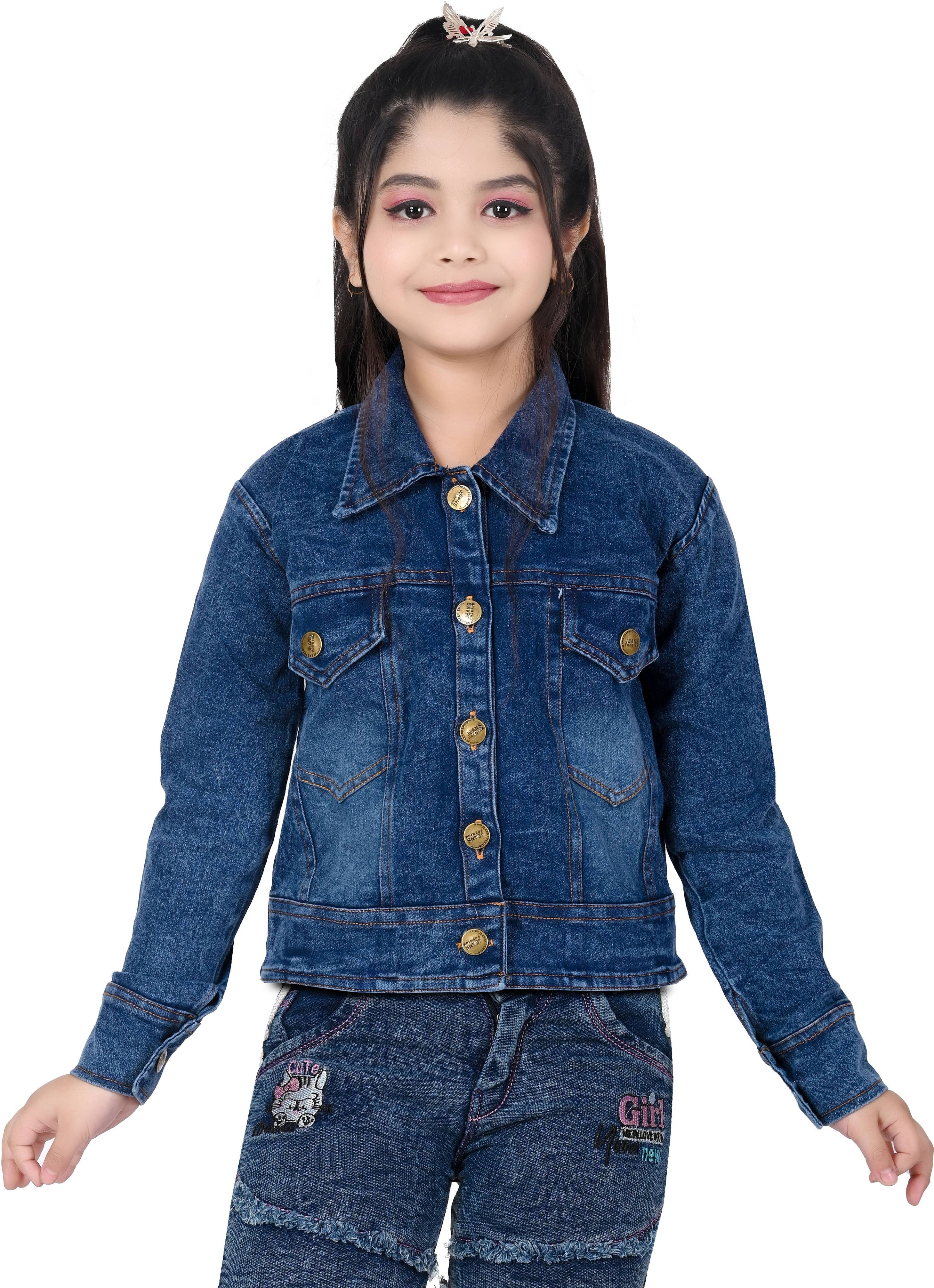 Bring classic denim style to your little one’s wardrobe with this premium Girls Denim Jacket & Jeans Set. The jacket features a structured collar, golden functional buttons, flap chest pockets and reinforced seams for durability. Both pieces are finished in a fashion-washed blue that gives a lived-in look while staying soft against the skin. The jeans include playful embroidered motifs and frayed hem detailing for an on-trend finish. Designed for active kids, the set balances style with comfort — breathable cotton-blend denim, free movement across the arms and legs, and a fit that layers easily over tees. Ideal for casual outings, family gatherings or a stylish school day. Available in multiple sizes; follow the size chart to choose the perfect fit.