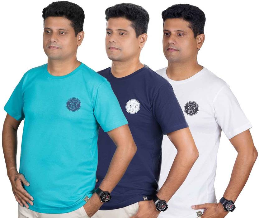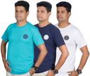 Pack of 3 Men Solid Round Neck Cotton Blend Dark Blue, White, Blue T-Shirt