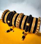 Bangle Bracelet set Latkan Set for Women and Girls Latest Fashion Latest Collection Designer Stylish Bangle set Festive partywear wedding heavy traditional bangle latkan set bangle set fashion jewellery under 500 Metal Gold black ethnic Pearl bangle set latkan set Black Blue Red Maroon Green Yellow Bangle Set