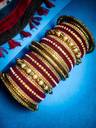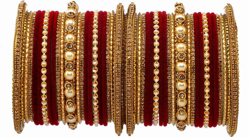 PRODUCT DETAILS: - This elegant charming bangle set is Maroon in color having Zircon gemstone studded Kada and velvet bangles in middle with big sized pearl unique handcrafted kada giving you a gorgeous Look. This bangle set is available in pack of 42 bangles which is all set to make you feel ethnicity. SIZES: - This bangle set is available in three sizes - 2.4/2.6/2.8. QUALITY & PRICE: - We are always take stringent measures on product quality by maintaing its price. We assure you that our products are supreme in quality that is non-allergic and Budget friendly too. IDEAL GIFT: - Gifts are meant to express love and affection which can brings smile on your loved ones face. Bangles are more than the ornaments and thus perfect gift for your wife, sister, daughter, mother. OCCASION TO WEAR : - These bangles are shimmering having glitter/glossy finish and you can wear them in weddings, festivals, parties, karwachauth, diwali, raksha bandhan etc. ABOUT RIJOLI: - We aim at reforming the fashion trends at reasonable cost in India with our exclusive bangles collection. We are focussed to offer excellent customer experience that can make your everday special. JEWELLERY CARE: - Its always necessary to take care of your jewellery accessories for enjoying them longer, so avoid there contact with perfumes and sprays, Always store them in moist free and dirt free box, Use soft cloth to clean them.