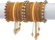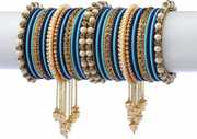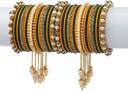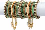 PRODUCT DETAILS: - This elegant charming bangle set is Green & Yellow in color having white round shaped pearl & Zircon gemstone studded latan Kada and velvet bangles in middle with big sized pearl unique handcrafted kada giving you a gorgeous Look. This bangle set is available in pack of 42 bangles which is all set to make you feel ethnicity. SIZES: - This bangle set is available in three sizes - 2.4/2.6/2.8. QUALITY & PRICE: - We are always take stringent measures on product quality by maintaing its price. We assure you that our products are supreme in quality that is non-allergic and Budget friendly too. IDEAL GIFT: - Gifts are meant to express love and affection which can brings smile on your loved ones face. Bangles are more than the ornaments and thus perfect gift for your wife, sister, daughter, mother. OCCASION TO WEAR : - These bangles are shimmering having glitter/glossy finish and you can wear them in weddings, festivals, parties, karwachauth, diwali, raksha bandhan etc. ABOUT RIJOLI: - We aim at reforming the fashion trends at reasonable cost in India with our exclusive bangles collection. We are focussed to offer excellent customer experience that can make your everday special. JEWELLERY CARE: - Its always necessary to take care of your jewellery accessories for enjoying them longer, so avoid there contact with perfumes and sprays, Always store them in moist free and dirt free box, Use soft cloth to clean them.