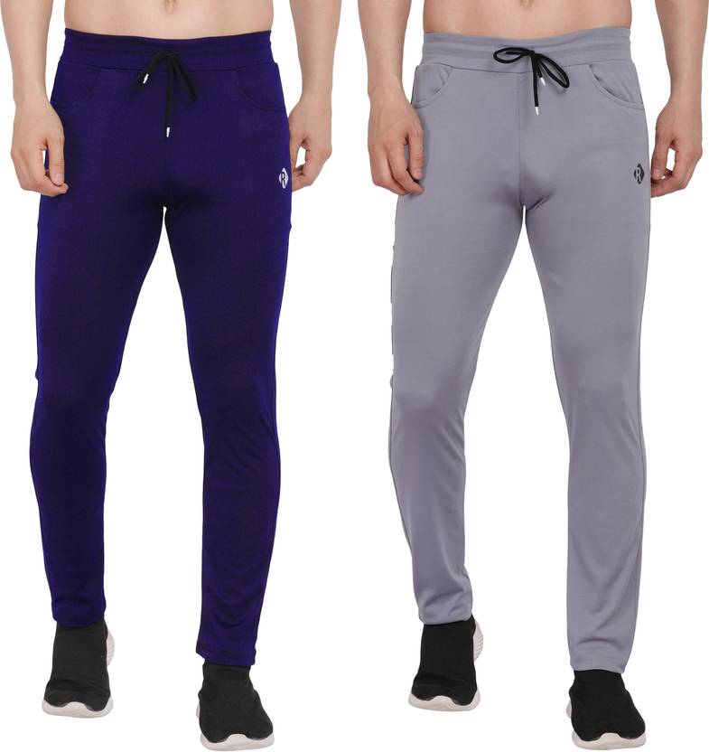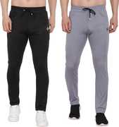 Pack of 2 Men Solid Grey, Dark Blue Track Pants