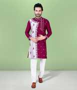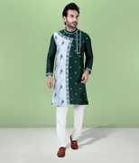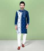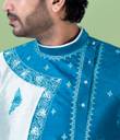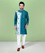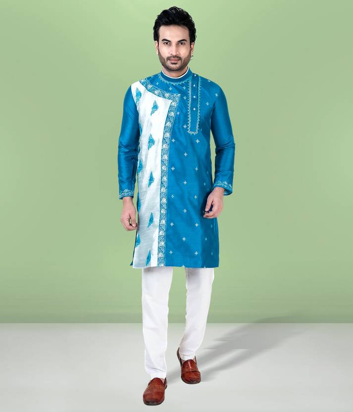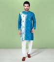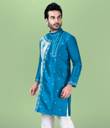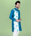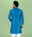Men Self Design Cotton Silk Straight Kurta (Light Blue)
