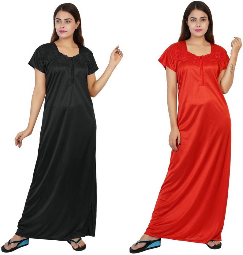 Material: Satin Premium Nighty, X-Large-Size: Chest over Bust- 44 Inch,Hips-46 Inch, Length-55 Inch