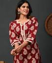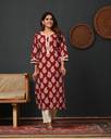 Add a pop of elegance to your wardrobe with this exquisite round neck printed maroon cotton kurti. Crafted from soft, breathable cotton fabric, this kurti offers all-day comfort while exuding timeless style. The rich maroon hue, paired with intricate prints, creates a perfect blend of tradition and modern flair. Its flattering round neckline adds a touch of sophistication, making it ideal for both casual and semi-formal occasions. Whether you’re heading to a brunch with friends or a family gathering, this versatile piece pairs effortlessly with leggings, palazzos, or jeans for a chic, polished look. Step out in style with this must-have addition to your ethnic collection.