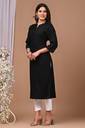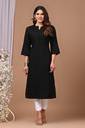 Rimeline Women Solid Straight Kurta (Black)