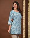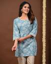 Fresh and Fashionable Round Neck Cotton Printed Aqua Green Short Kurti