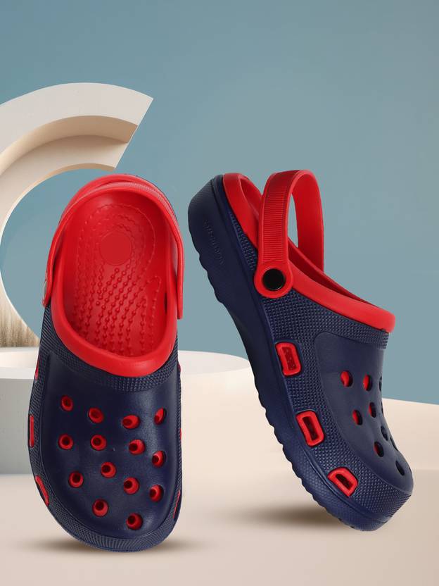 RINDAS Men Clogs (Navy, Red , 4)