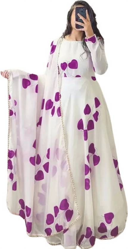 Women Printed Georgette Anarkali Kurta (Red)