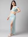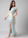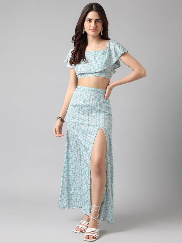 "Womens 2 piece Coord set Beach wear Dress Full Maxi length Front Slit Trendy print on Fabric Sizes S, M, L Machine Wash"