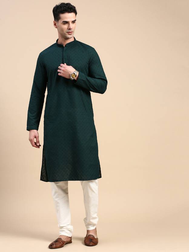 Rishika Men Embroidered Art Silk Straight Kurta (Dark Green)