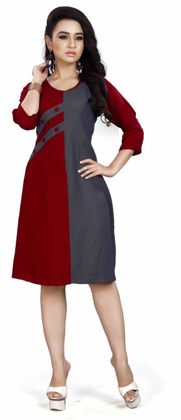 Rishikesh Fashion Women A-line Red, Grey Knee Length Dress