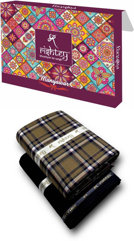 Rishtey Unstitched Cotton Blend Shirt & Trouser Fabric Solid, Checkered