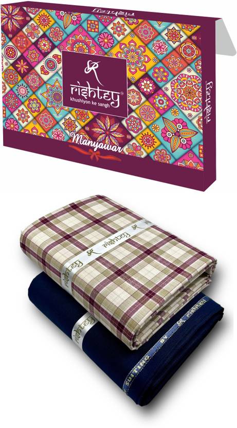 Rishtey Unstitched Cotton Blend Shirt & Trouser Fabric Solid, Checkered