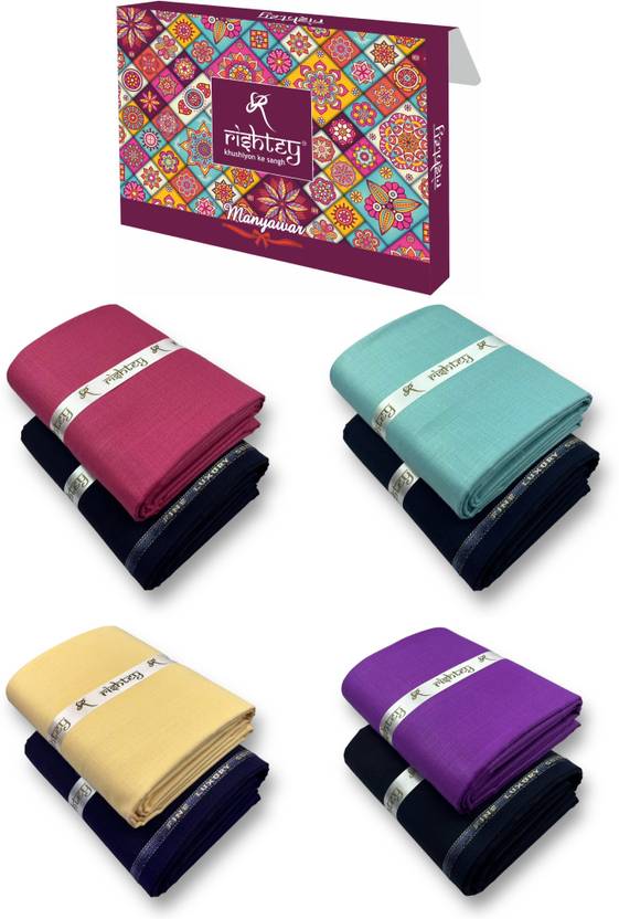 NOTE: The fabric is NOT PURE COTTON. Shirt: 2.25 meters , Pant: 1.20 meters. Set of 4 Combo set & each combo comes with a gift box.