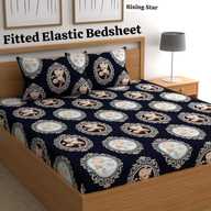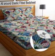RisingStar Microfiber Double Fitted (Elastic) 250 TC Printed Bedsheet (Pack of 1, Fitted- Green Flowers)
