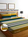 RisingStar Cotton King Fitted (Elastic) 250 TC Striped Bedsheet (Pack of 1, FITTED_Green_Leaf)