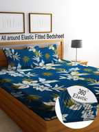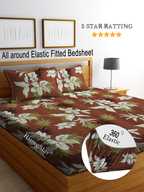 RisingStar Microfiber King Fitted (Elastic) 250 TC Printed Bedsheet (Pack of 1, Fitted_Green,Yellow,Floral)
