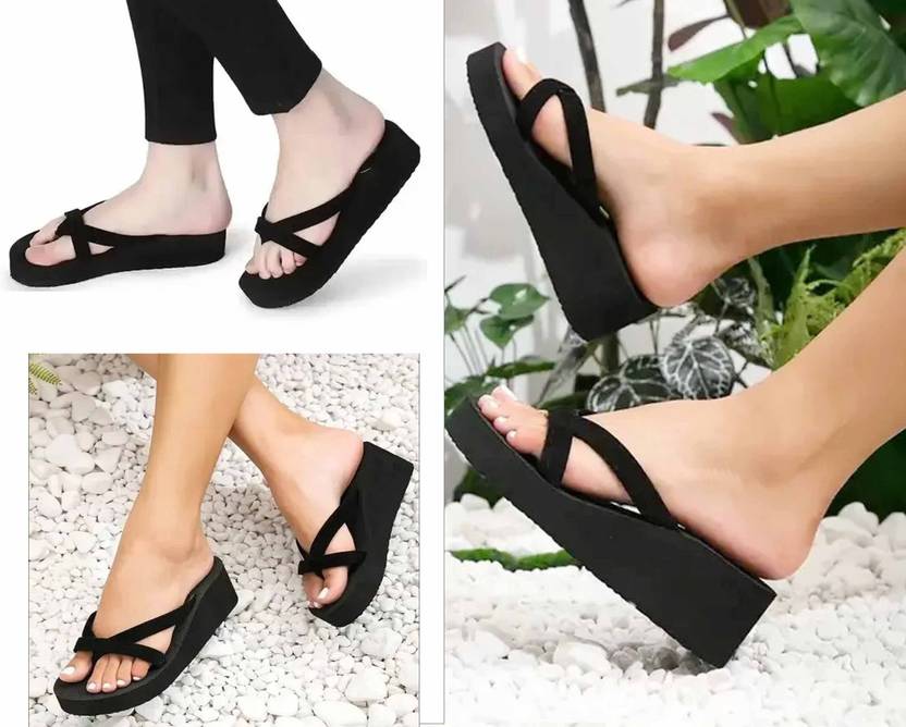 RIVAYPAFASHION Women Slippers (Black , 6)