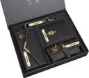 All leather accessories are made from premium faux leather and come with gold-tone metal plates engraved with the recipient’s name. Packaged in a stylish gift box, this set by RIWYAN is the perfect blend of beauty, utility, and personal sentiment.