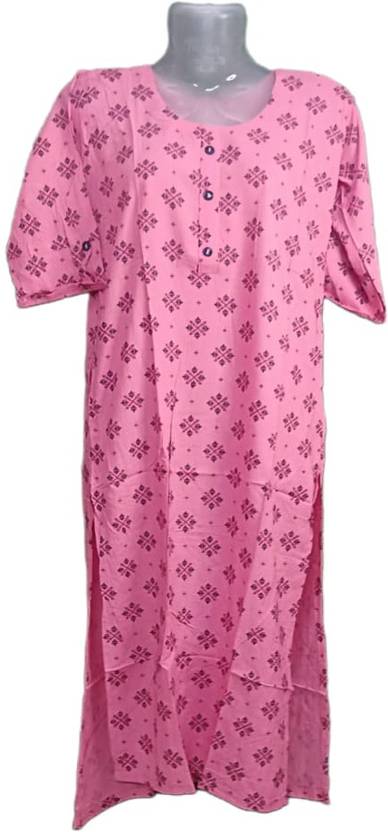 Women Printed Viscose Rayon Straight Kurta (Pink)